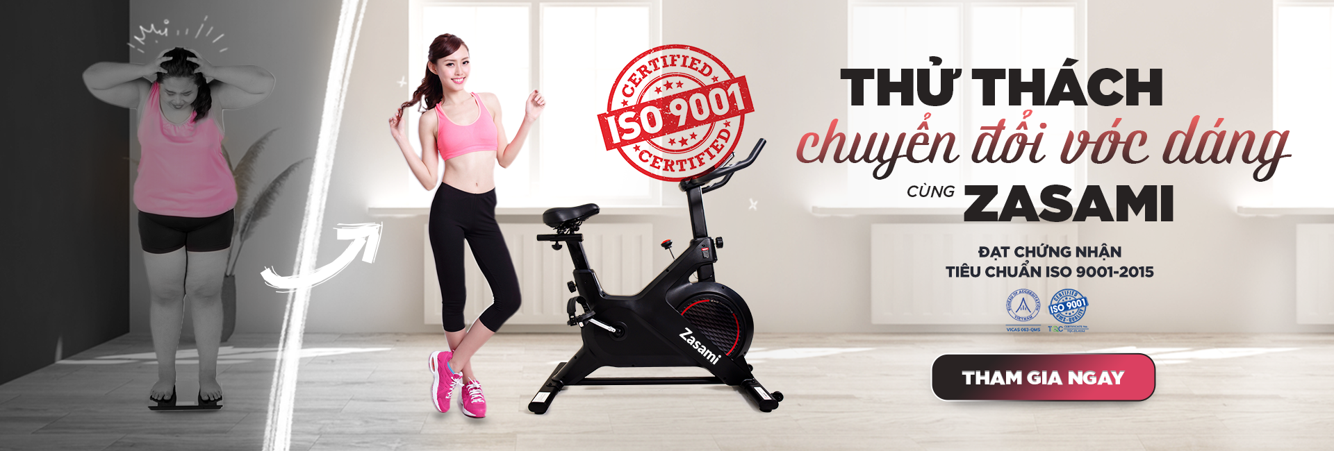 Bạn đang muốn giảm cân, muốn tăng cường sức khỏe cho cả gia đình. Vậy tại sao không chọn xe đạp tập Zasami. Một thiết bị thể thao tiện ích, giúp tăng cường sức mạnh cho đôi chân, giải tỏa stress, đốt cháy calo hiệu quả nhanh chóng.